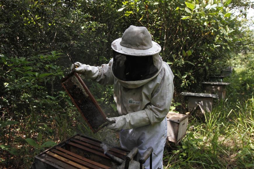 agrícola Francisco Rodrigues, responsável pela manutenção do criatório, explica