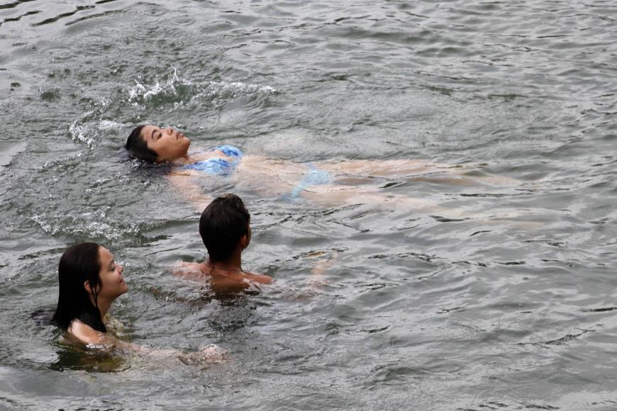 e dos turistas é banham-se no rio a perder de vista. Os moradores, como a