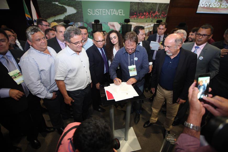 Pacto – Após a assinatura das ordens de serviço, Simão Jatene e mais 30 gestores municipais assinaram o termo de adesão ao Pacto pela Educação do Pará, frente de atuação capitaneada pelo Governo do Estado e compartilhada por prefeituras municipais, instituições, entidades de classe e empresas para fortalecimento de ações pedagógicas nas escolas públicas estaduais e municipais. Desde que foi lançado, em 2013, o programa já alcançou significativos resultados, como a melhorias dos índices educacionais do Estado.