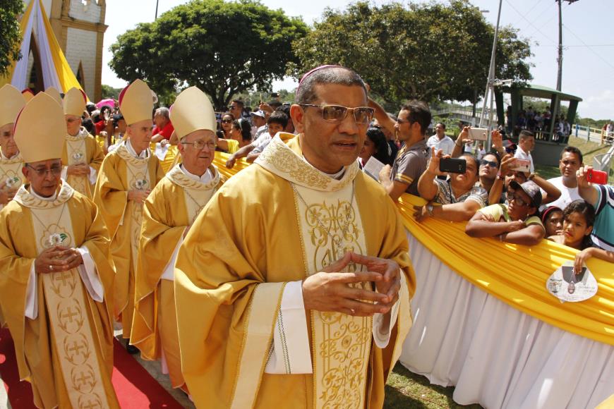 | O novo bispo auxiliar da Arquidiocese de Belém, Dom Antônio de Assis Ribeiro, nomeado pelo Papa Francisco, durante a cerimônia de Ordenação Episcopal |