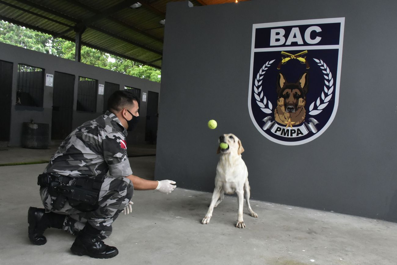 No treinamento, o binómio homem-cão recebe prioridade. Primeiro o profissional recebe o treinamento e em seguida o animal para que a relação atinja o máximo de cumplicidade e produtividade no momento da ação. Desta forma, o cão consegue ter 100% de assertividade, em especial na apreensão de entorpecentes por possuir um faro 300 vezes maior que o ser humano, detectar a passagem de uma droga pelo local até quatro dias depois, além de possibilitar um raio de atuação muito maior. Maternidade - A primeira maternidade canina militar de Belém deverá entrar em funcionamento em breve. Uma conquista histórica para a unidade, que vai passar a trabalhar com o manejo reprodutivo dos cães. Além das instalações físicas, o BAC vai adquirir equipamentos técnicos especializados, como aparelho de ultrassonografia, incubadora neonatal, equipamentos laboratoriais e cirúrgicos e 30 boxes com solários, onde serão alocados os novos cães. O prédio da maternidade será instalado na sede do Batalhão, na avenida Brigadeiro Protásio, bairro do Marco, em Belém.